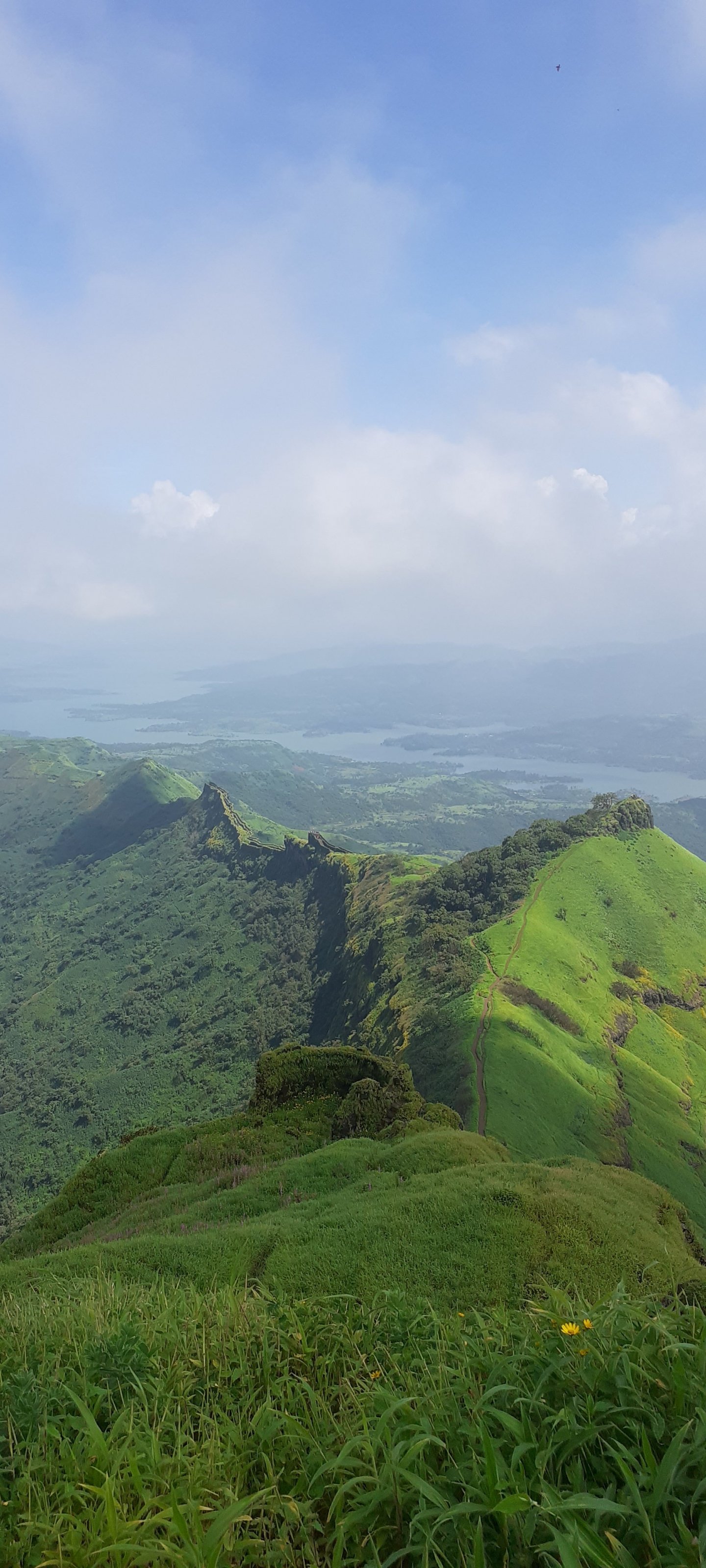 Обои: зеленые горы, горный хребет - 1440x3200