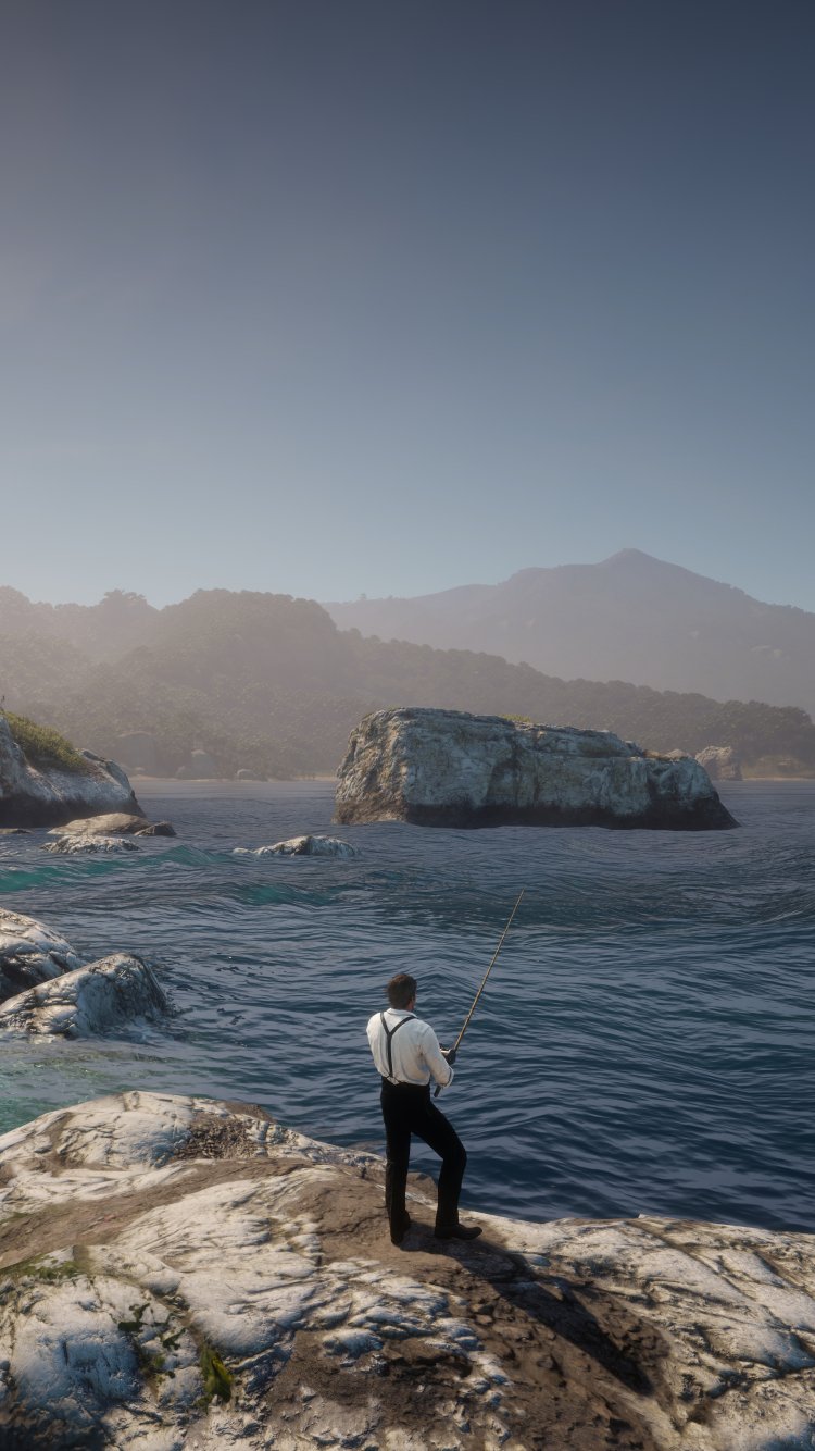 Обои: Red Dead Redemption 2, море, рыбалка - 750x1334