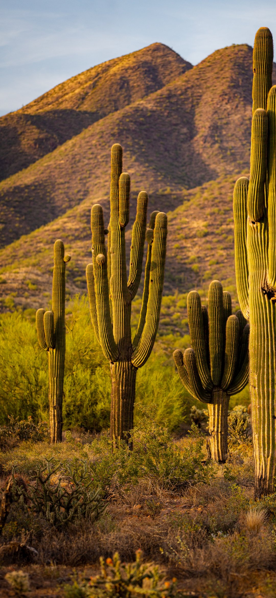 Обои: Скоттсдейл, Аризона, США, кактусы у гор - 1080x2340