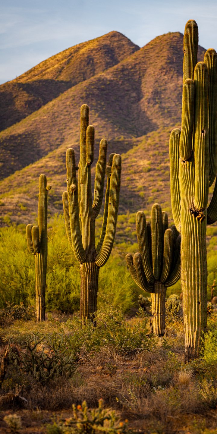 Обои: Скоттсдейл, Аризона, США, кактусы у гор - 720x1440