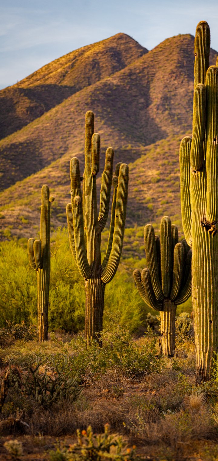Обои: Скоттсдейл, Аризона, США, кактусы у гор - 720x1520