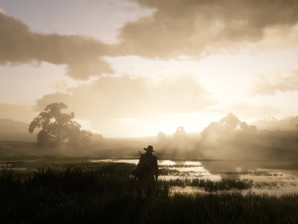 Обои: Red Dead Redemption 2, закат - 1024x768