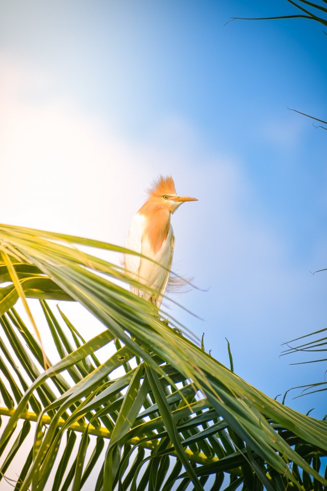 Обои: красивая птица, пальма - 640x960