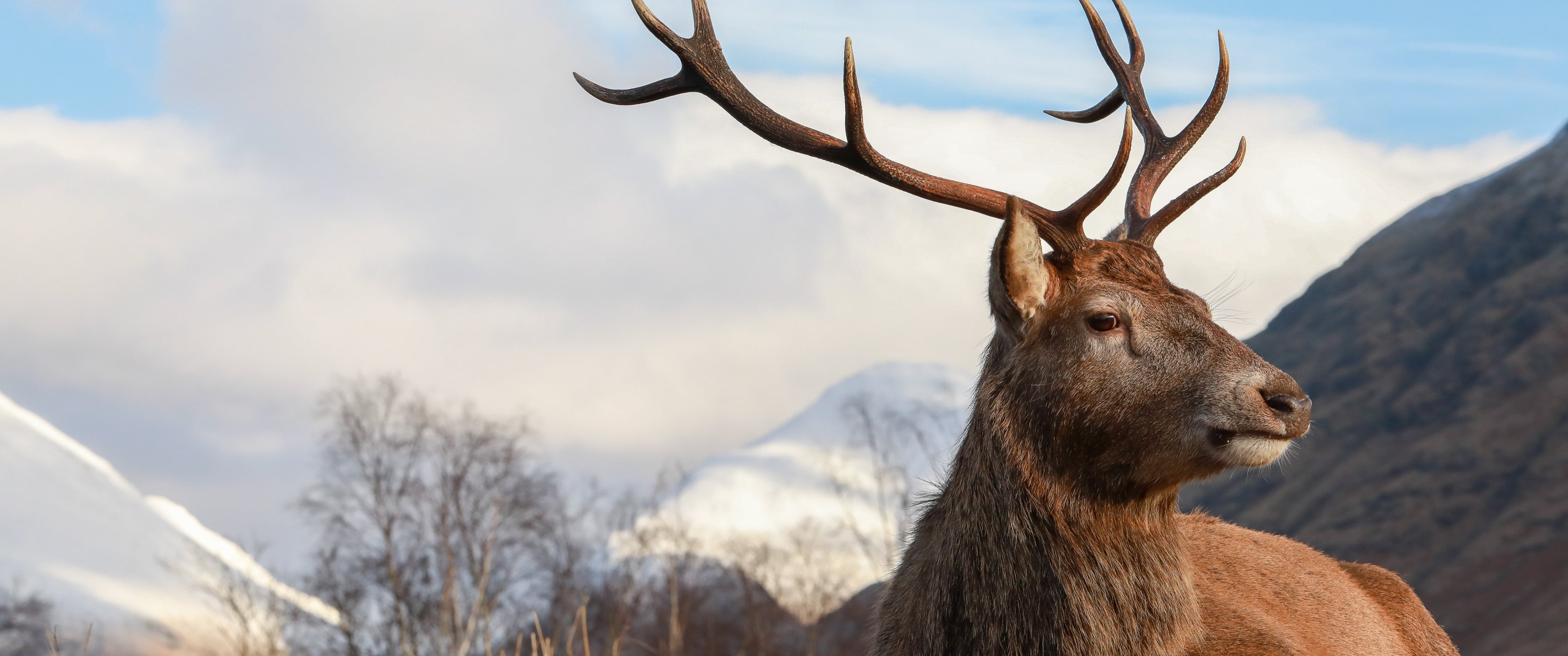 Обои: красный олень, рога, дикая природа - 3440x1440