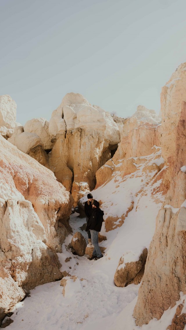 Обои: скала, снег, пешая прогулка - 640x1136