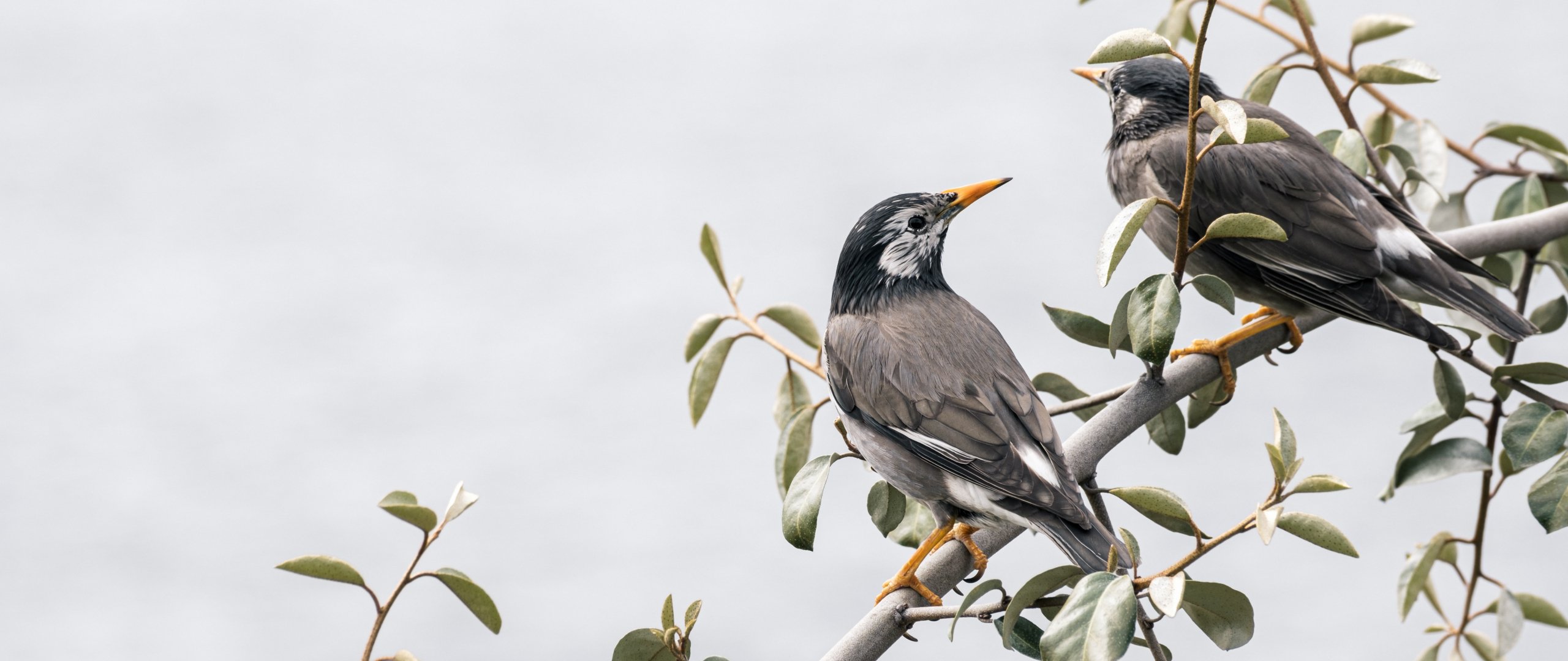 Обои: птицы на ветке, пара птичек - 2560x1080
