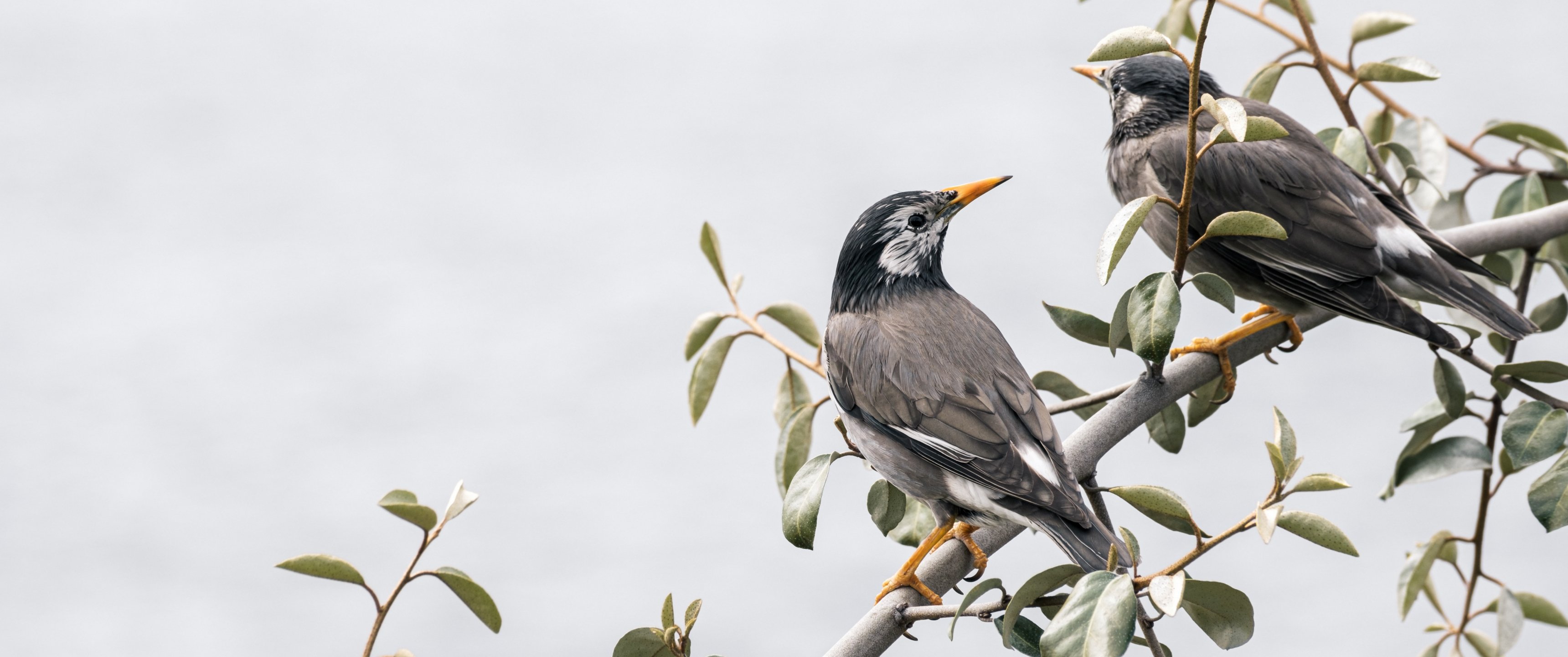 Обои: птицы на ветке, пара птичек - 3440x1440