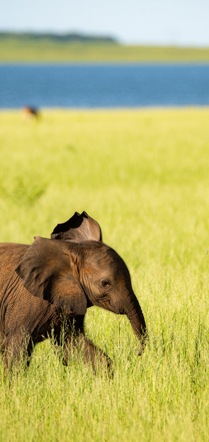 Обои: Озеро Кариба, слоненок - 720x1520