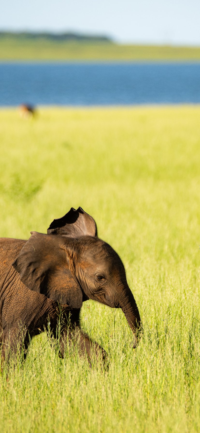 Обои: Озеро Кариба, слоненок - 828x1792