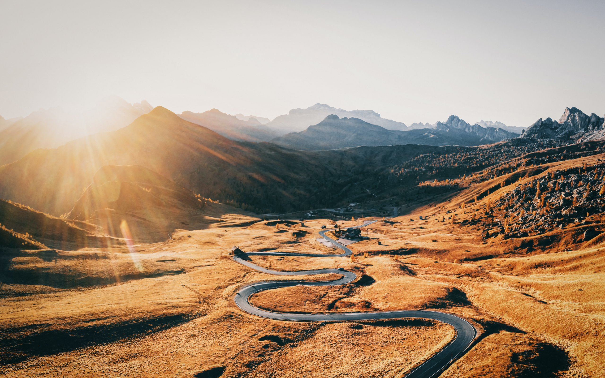 Обои: дорога между гор, горные вершины - 2560x1600