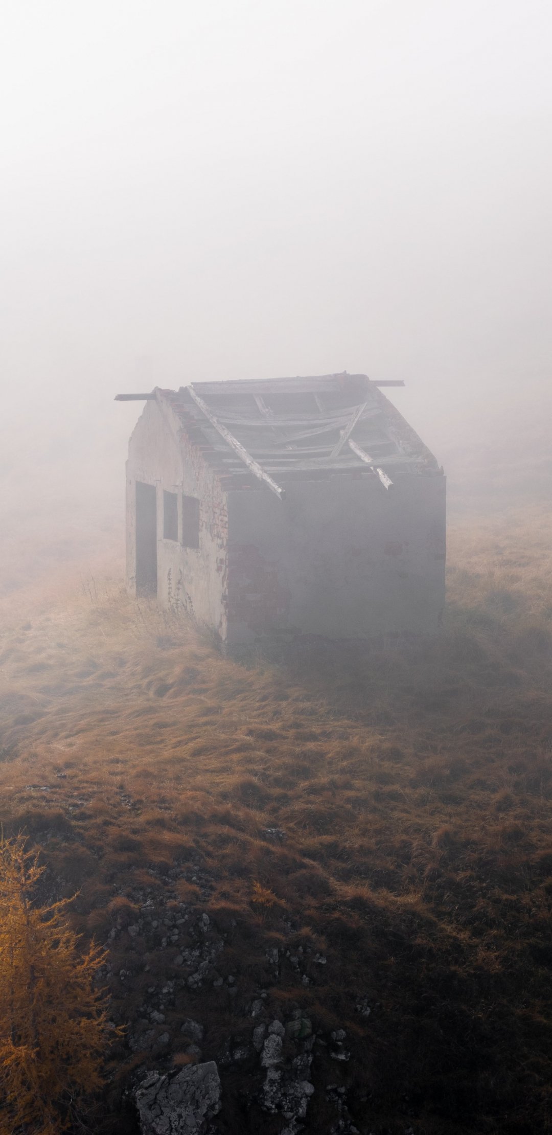 Обои: одинокий сарай, пустота - 1080x2220