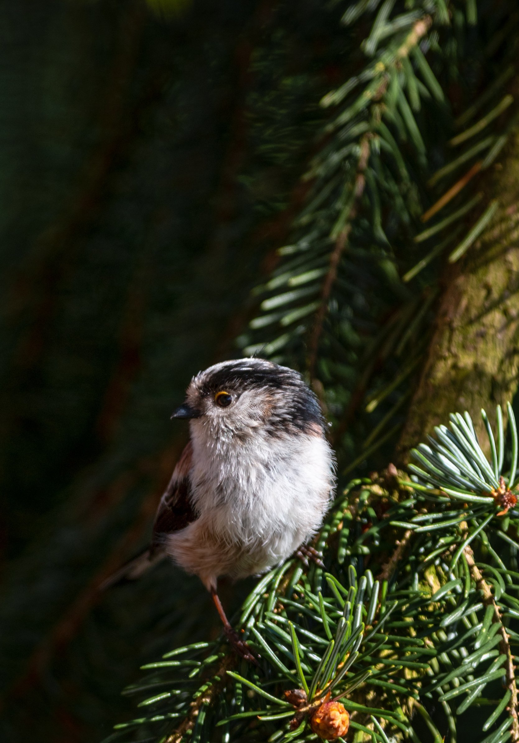 Обои: маленькая птичка, в еловых ветках - 1668x2388