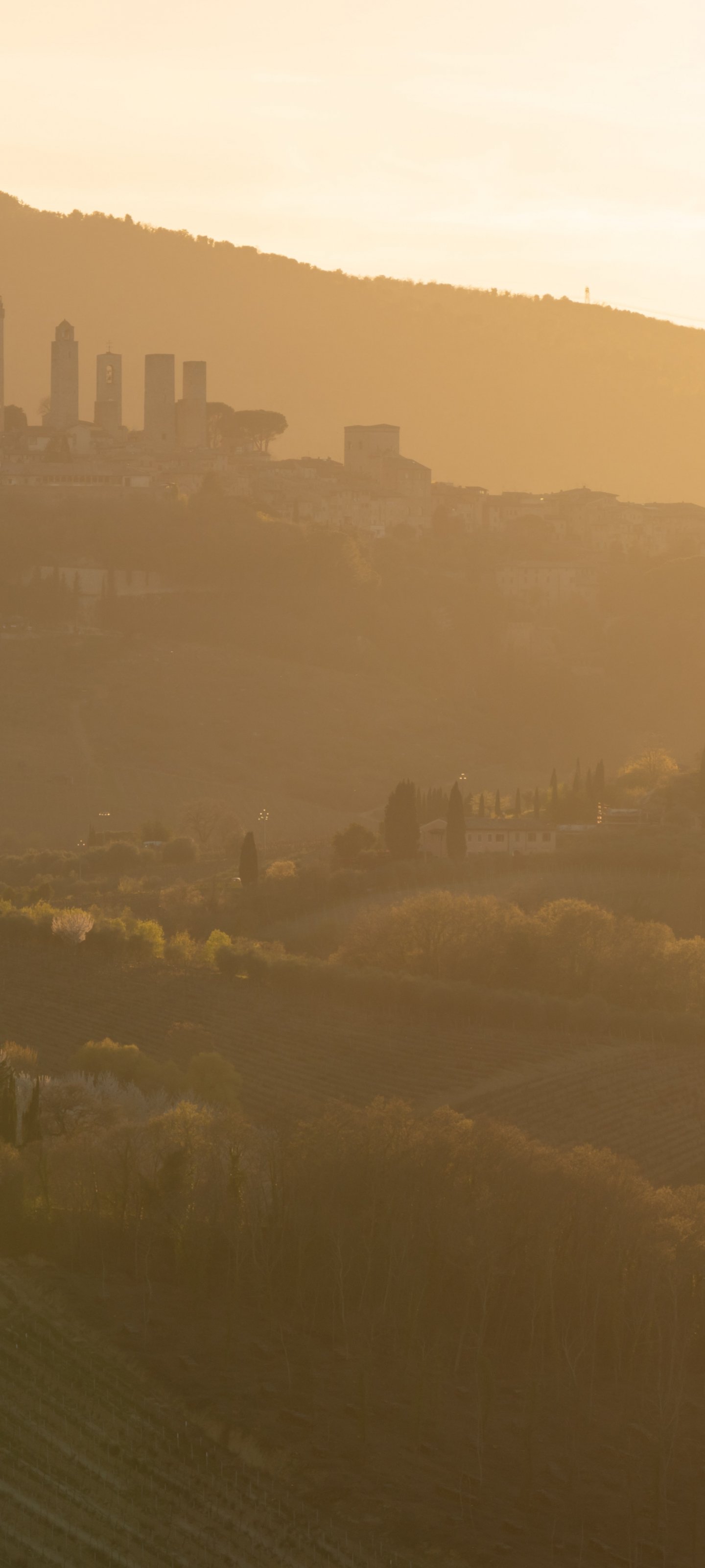 Обои: провинция Сиена, Италия, над городом - 1440x3200