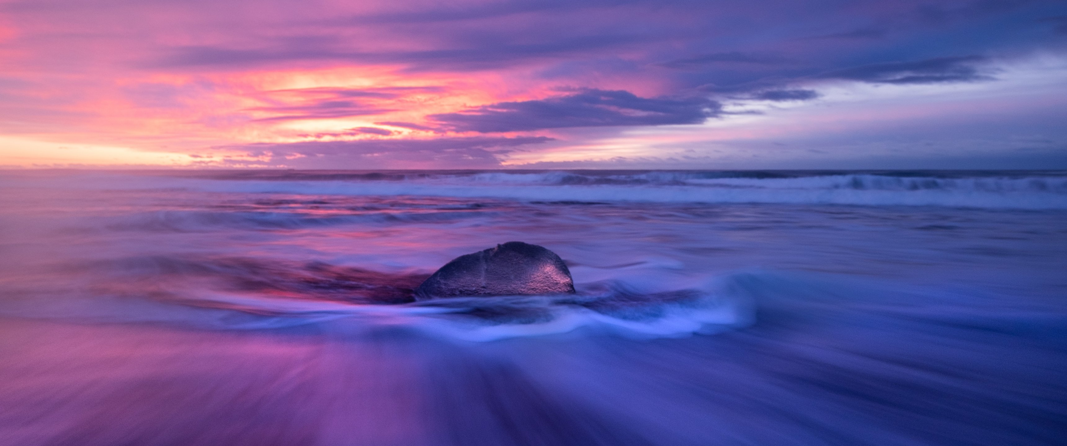 Обои: море, закат, волны - 3440x1440