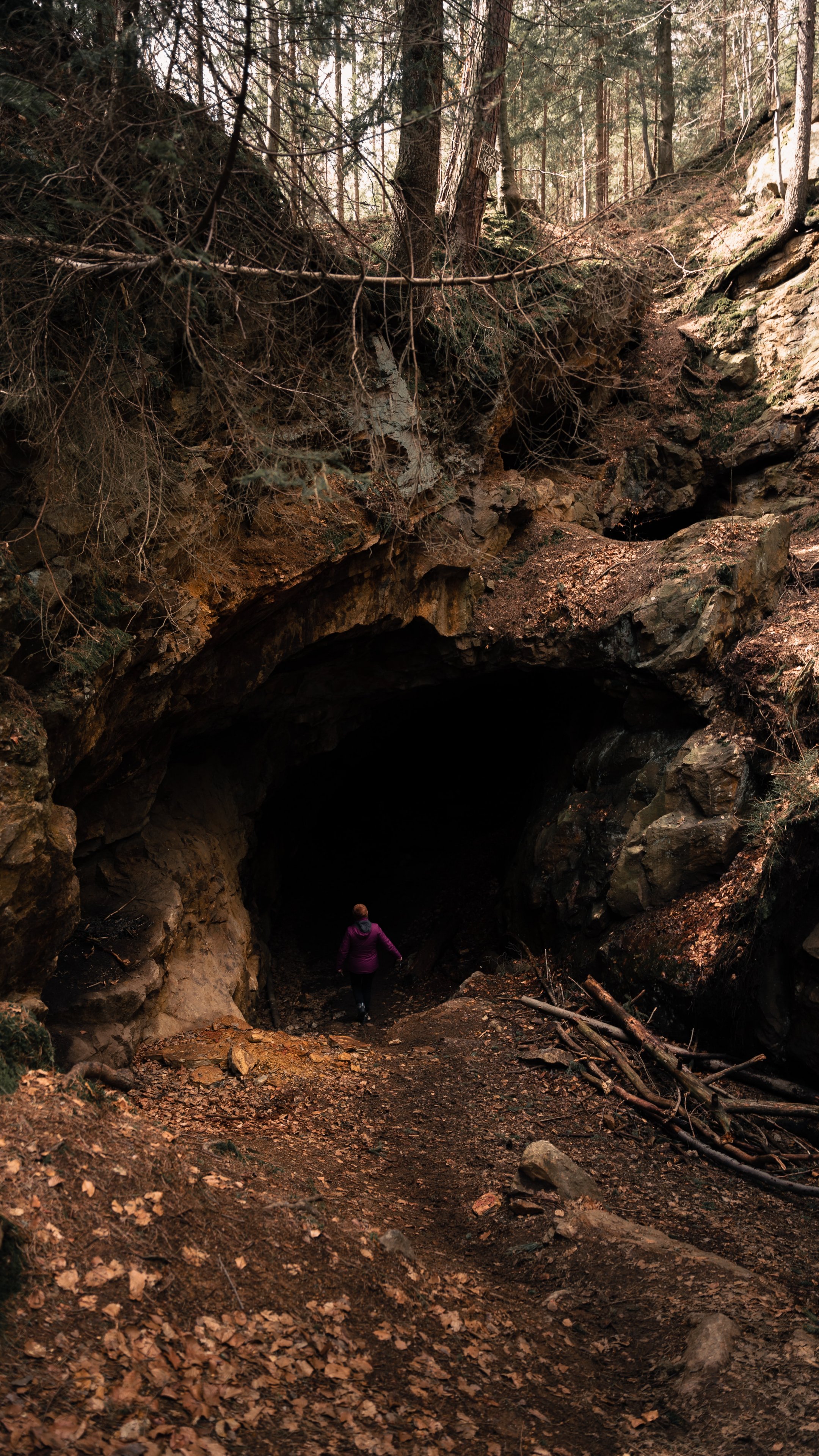 Обои: в лесу, пещера - 2160x3840