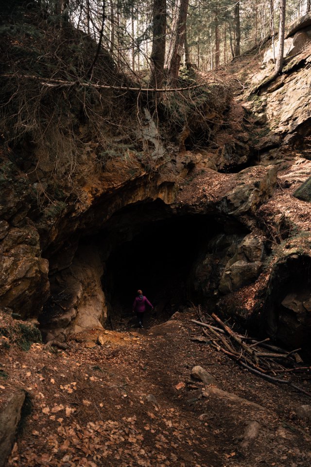 Обои: в лесу, пещера - 640x960