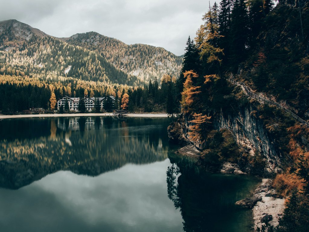 Обои: озеро в горах, место отдыха - 1024x768