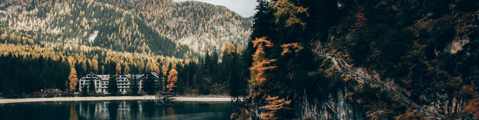 Обои: озеро в горах, место отдыха - 1590x400