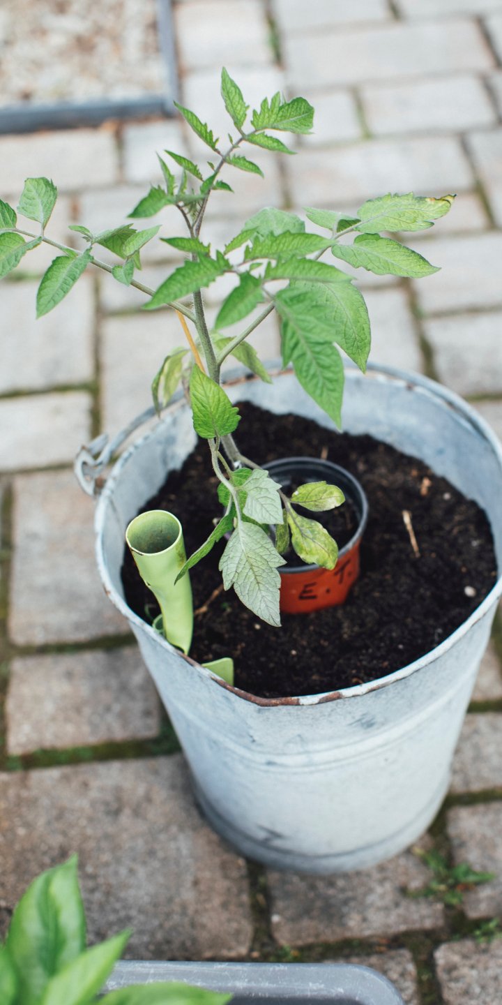 Обои: рассада, ведро с растением - 720x1440