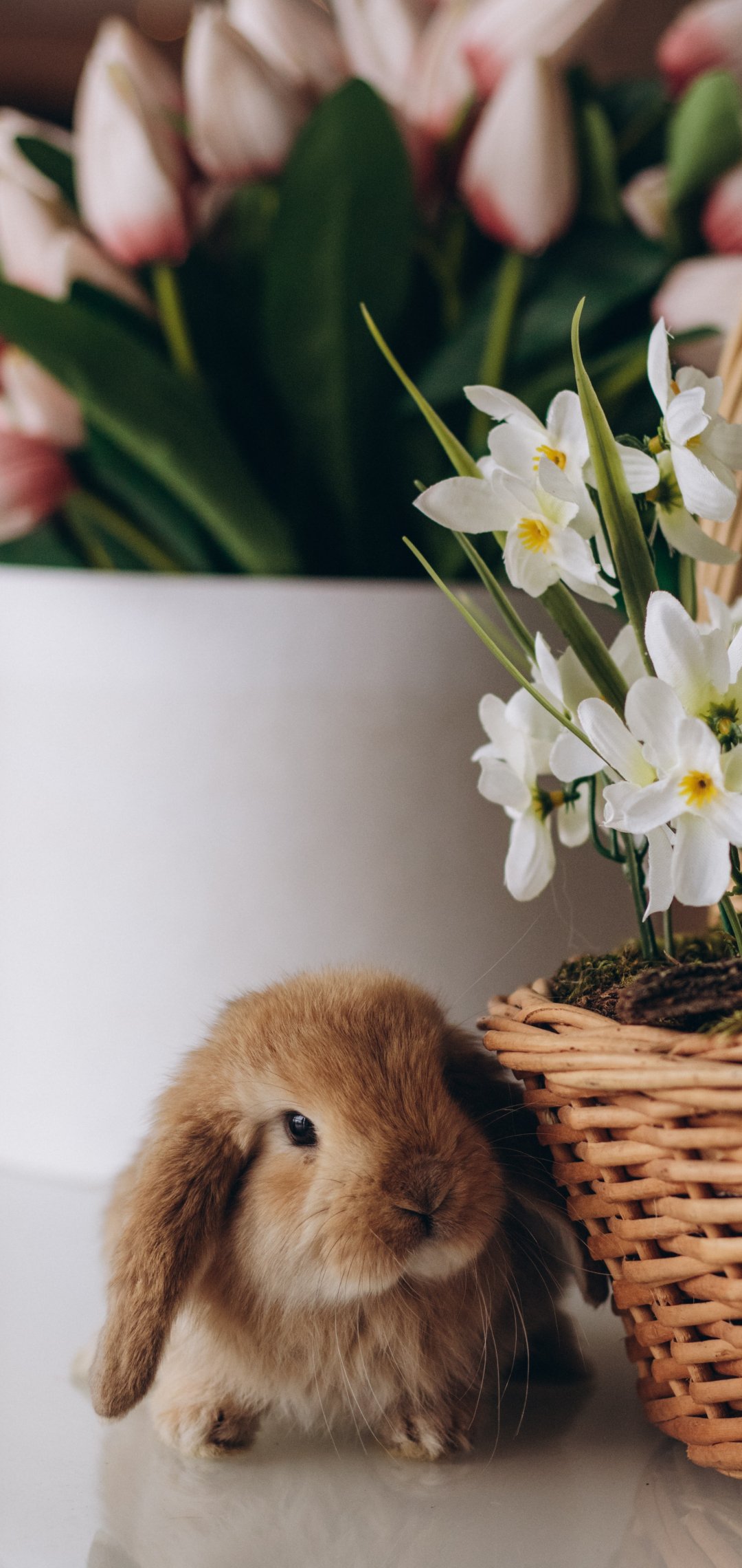 Обои: кролик, цветы - 1080x2280