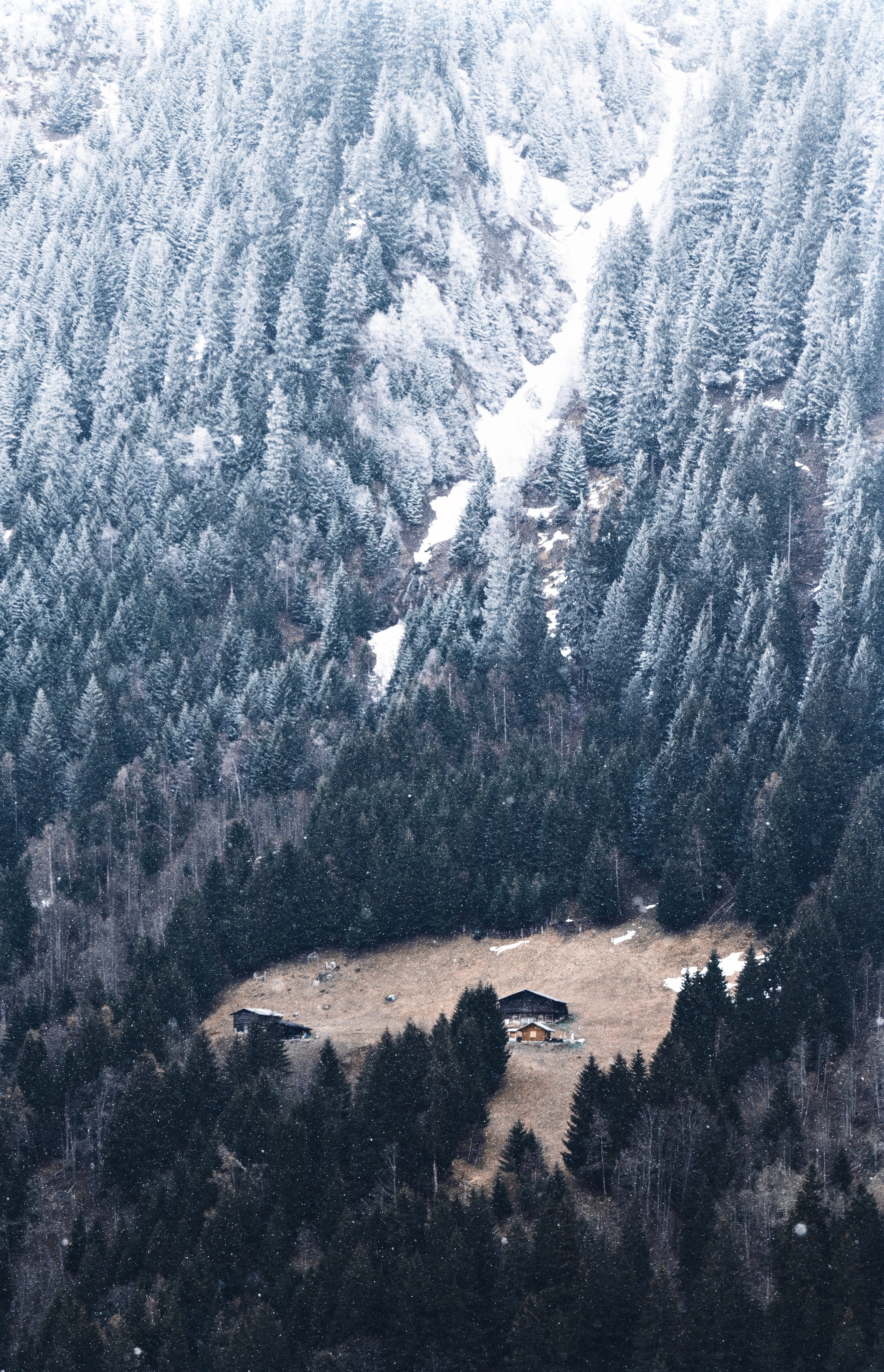 Обои: гора, спуск, домик в гарах - 3334x5176