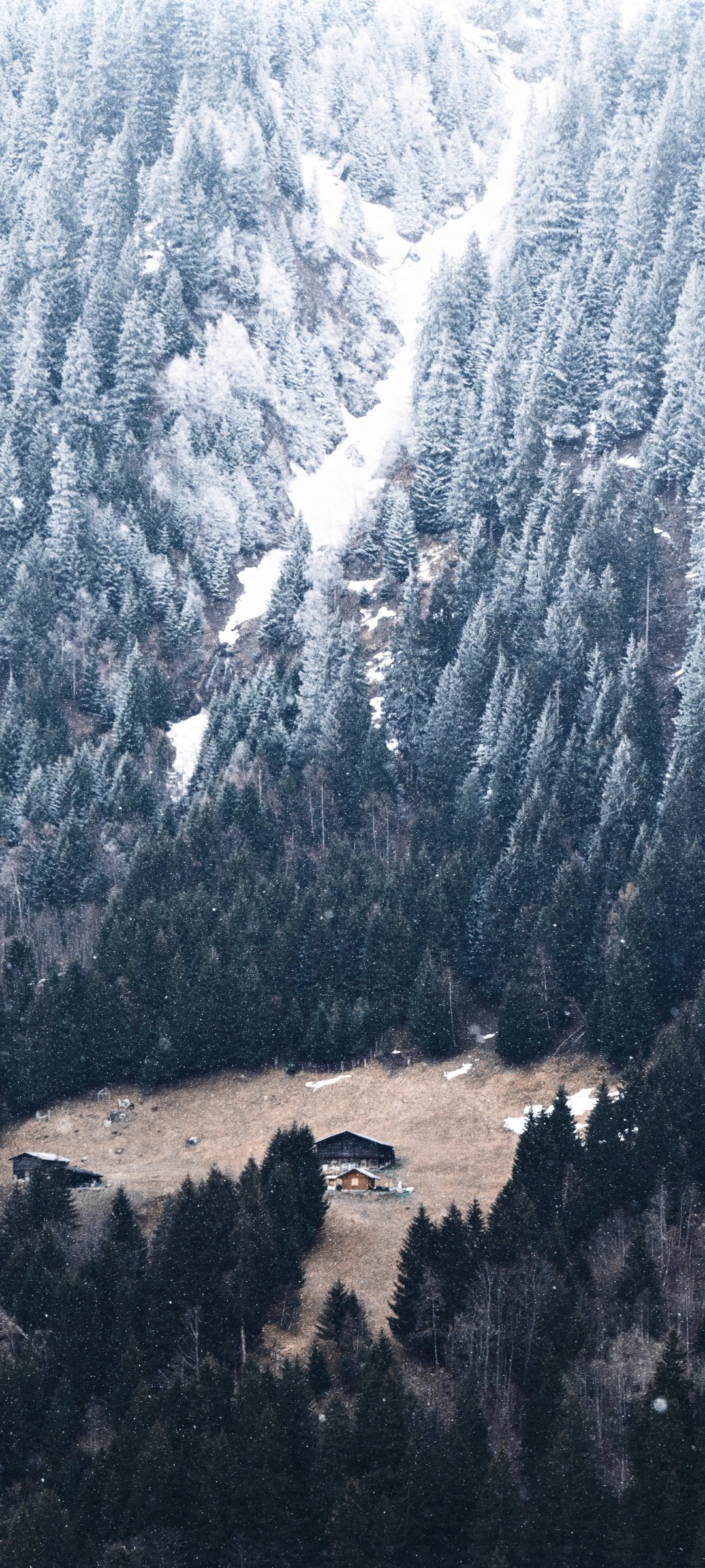 Обои: гора, спуск, домик в гарах - 1080x2400