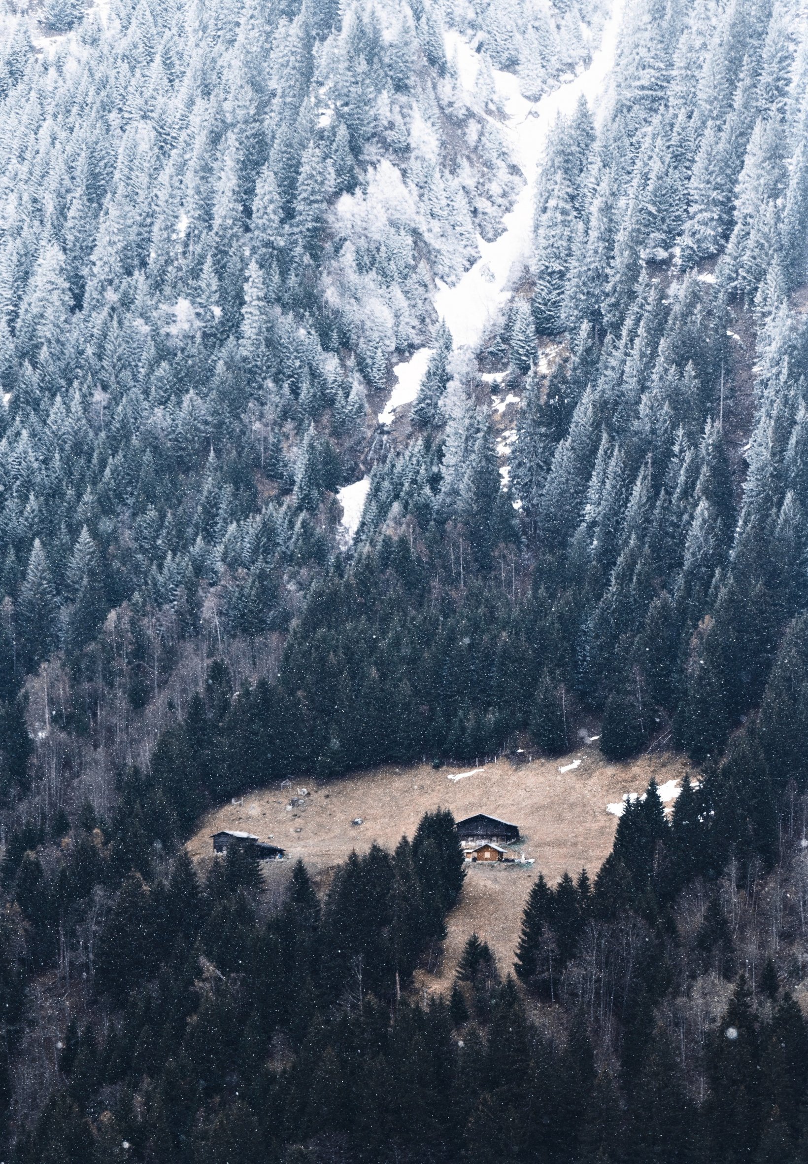 Обои: гора, спуск, домик в гарах - 1640x2360
