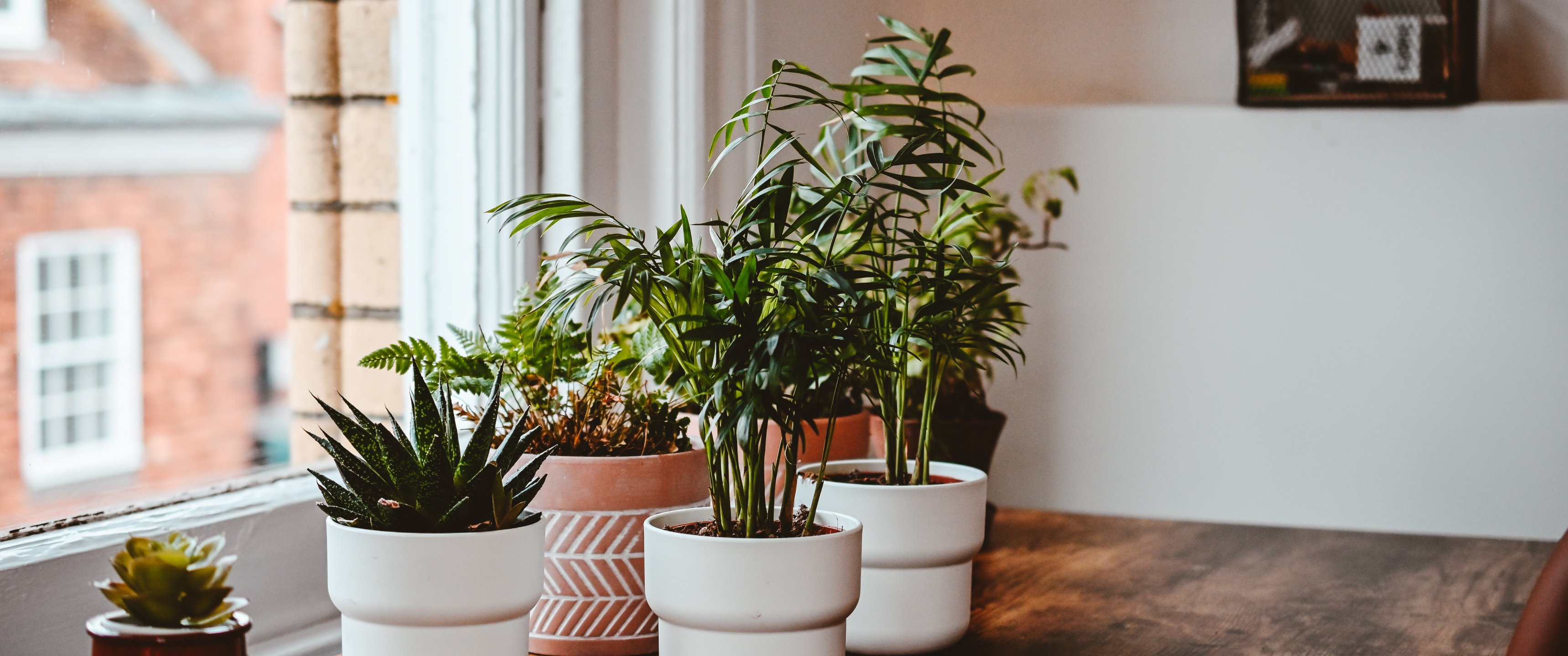 Обои: дом, цветы в горшках - 3440x1440