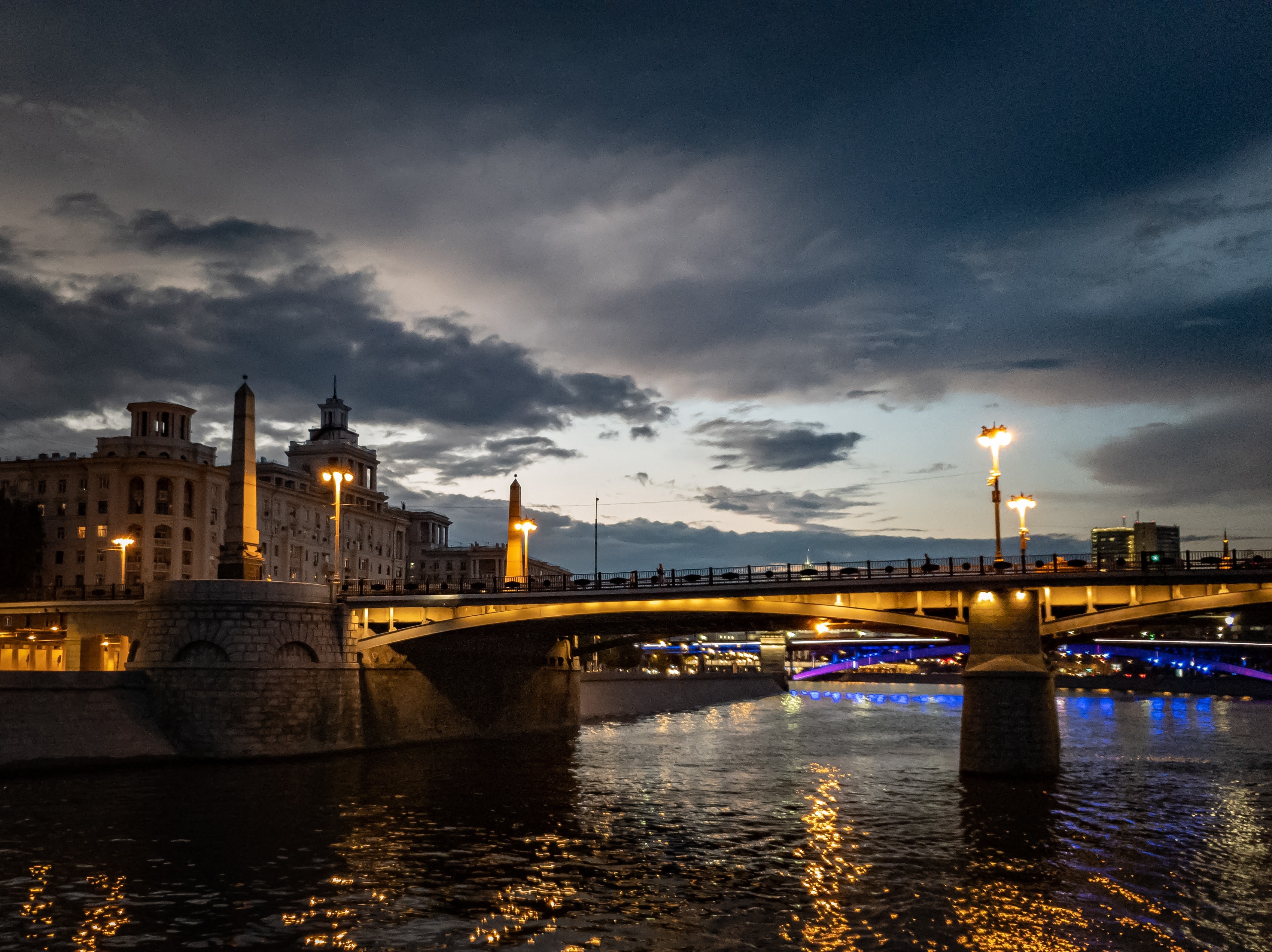 Обои: ночной город, мост через реку - 3398x2545