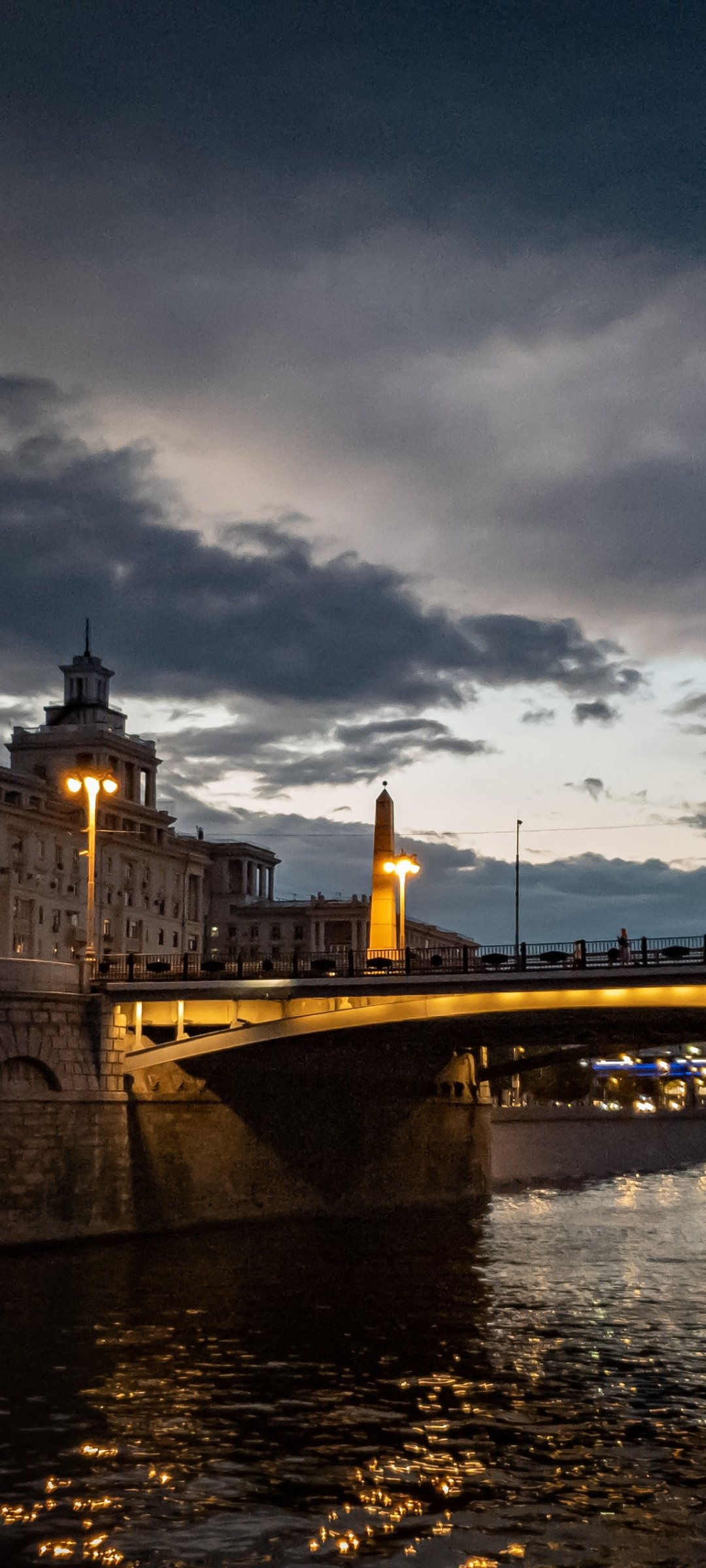 Обои: ночной город, мост через реку - 1080x2400