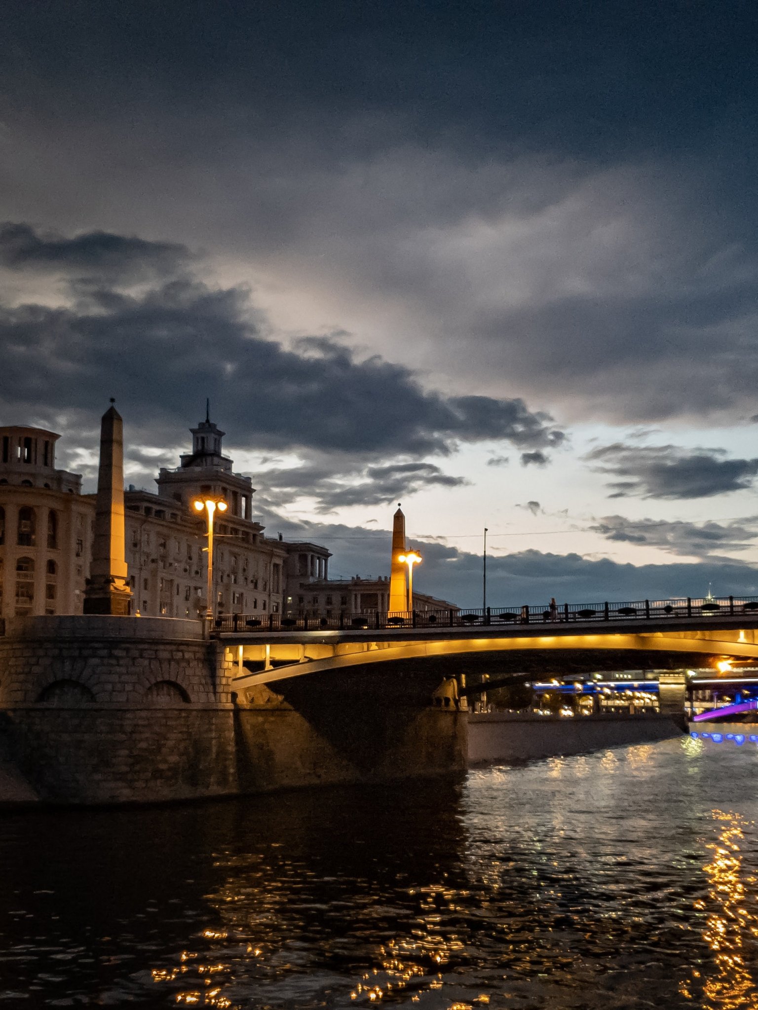 Обои: ночной город, мост через реку - 1536x2048