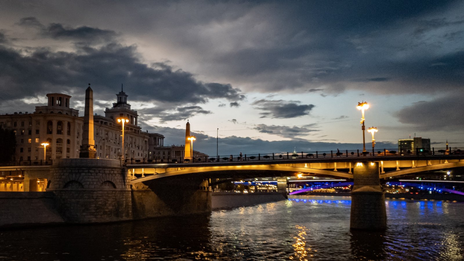Обои: ночной город, мост через реку - 1600x900
