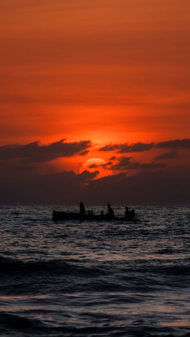 Обои: открытое море, на лодке - 640x1136