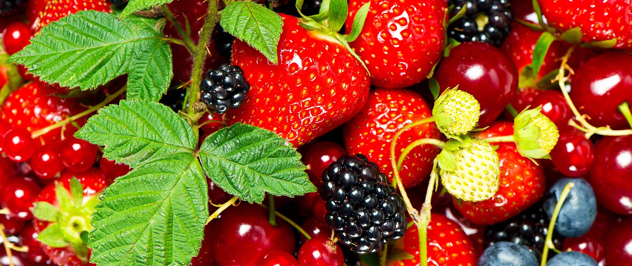Обои: клубника, ежевика, ягода - 2560x1080