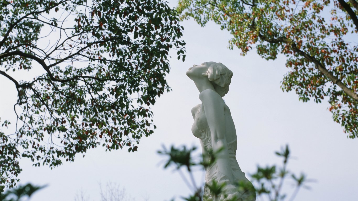 Обои: статуя, деревья - 1366x768