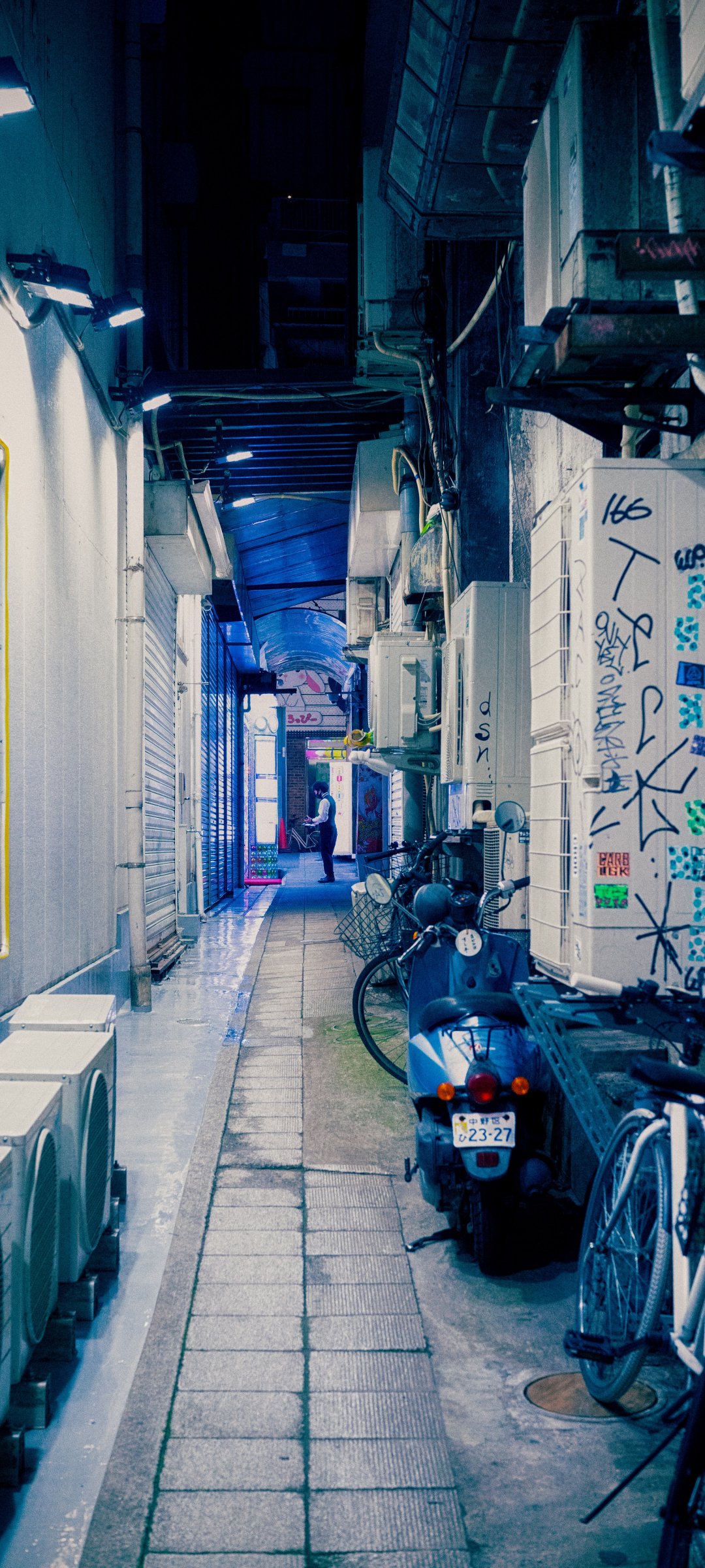ночной город, переулок, Япония