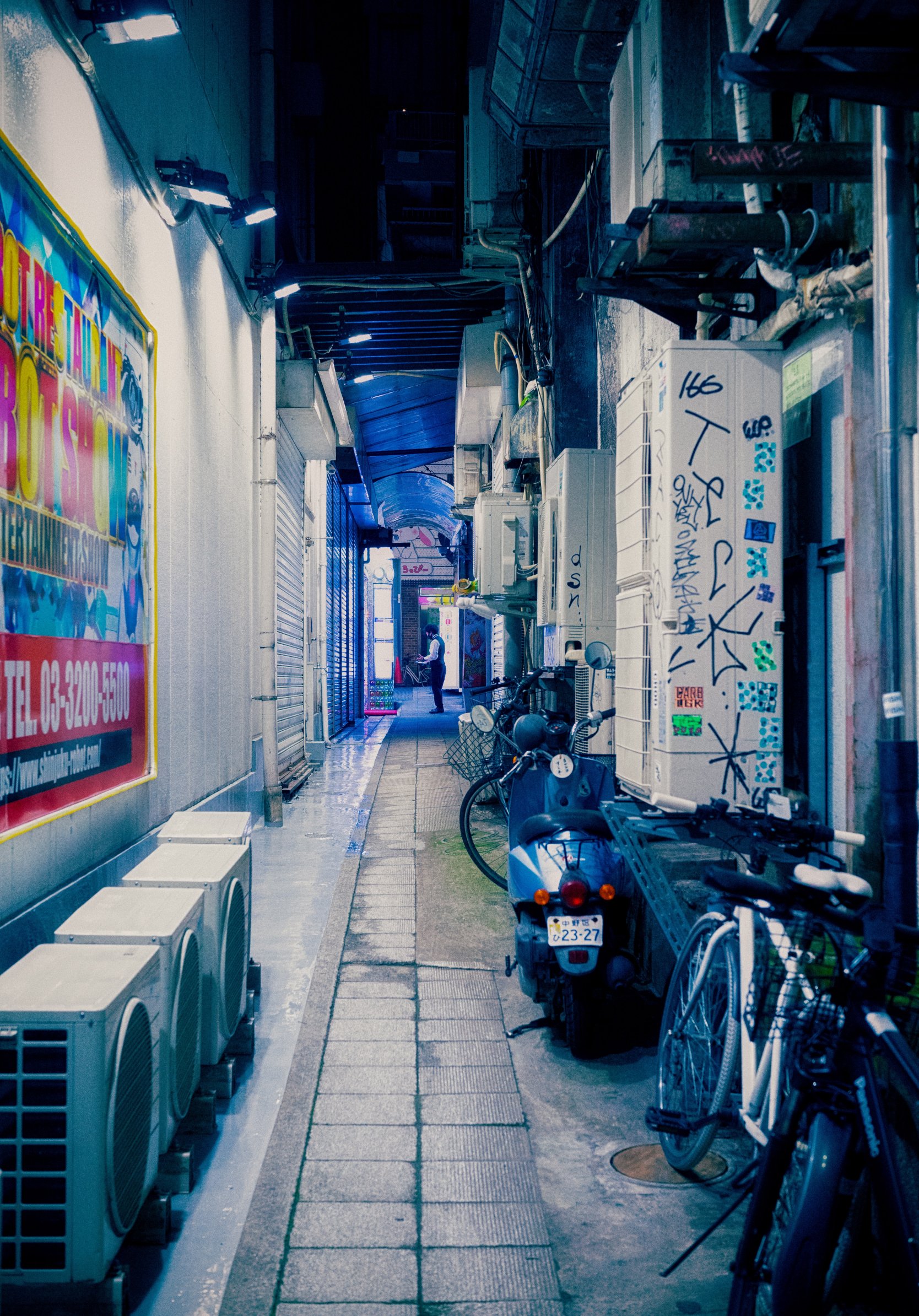 ночной город, переулок, Япония