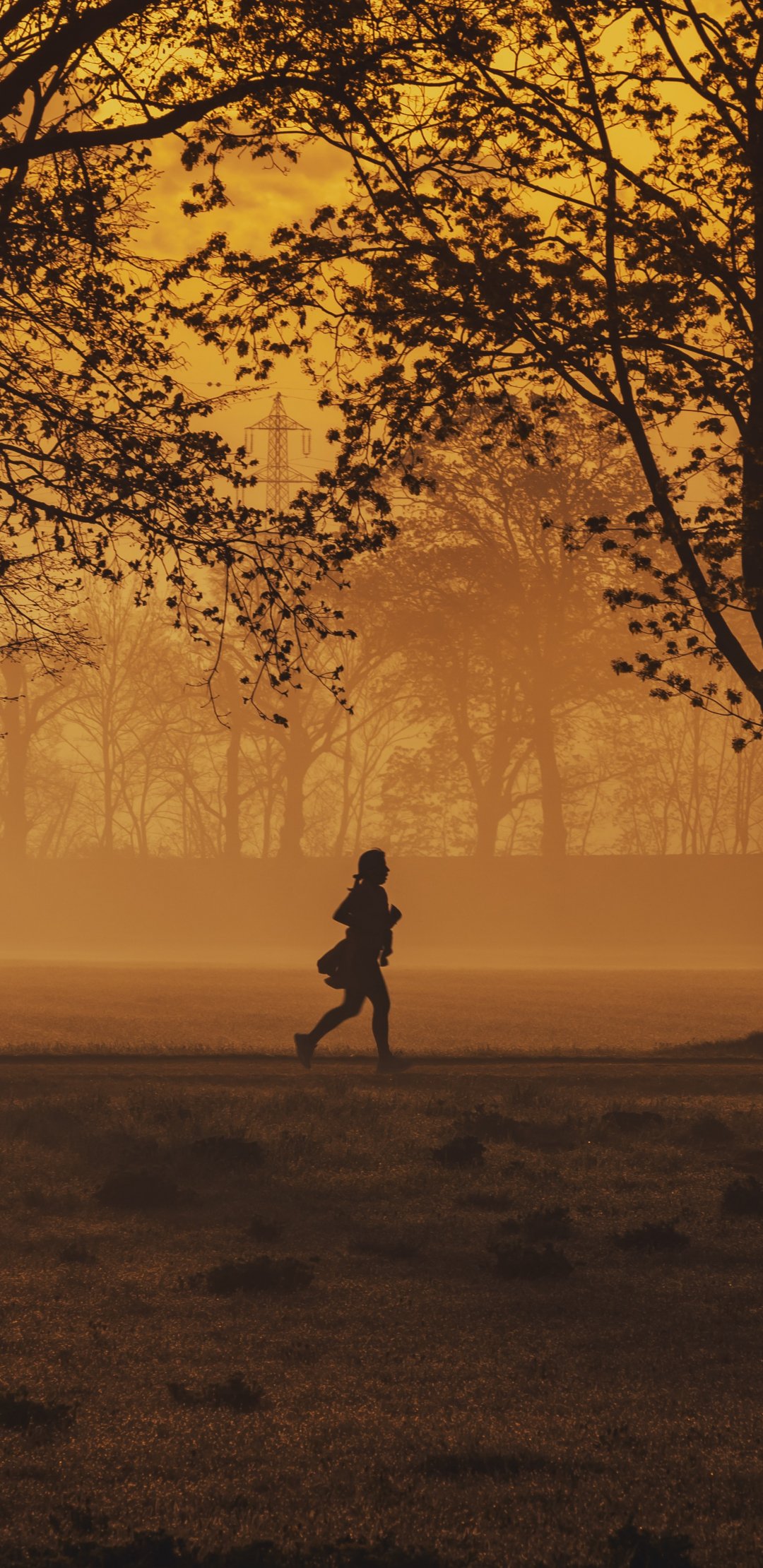 Обои: в желтом тумане, бегущий человек - 1080x2220