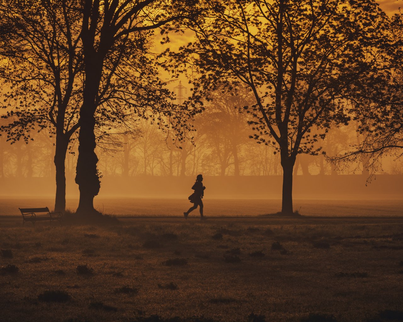 Обои: в желтом тумане, бегущий человек - 1280x1024