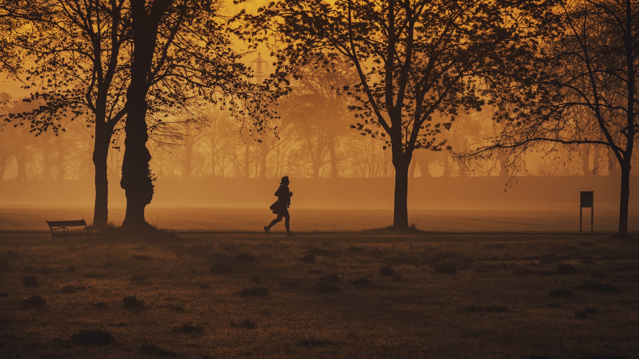 Обои: в желтом тумане, бегущий человек - 2048x1152