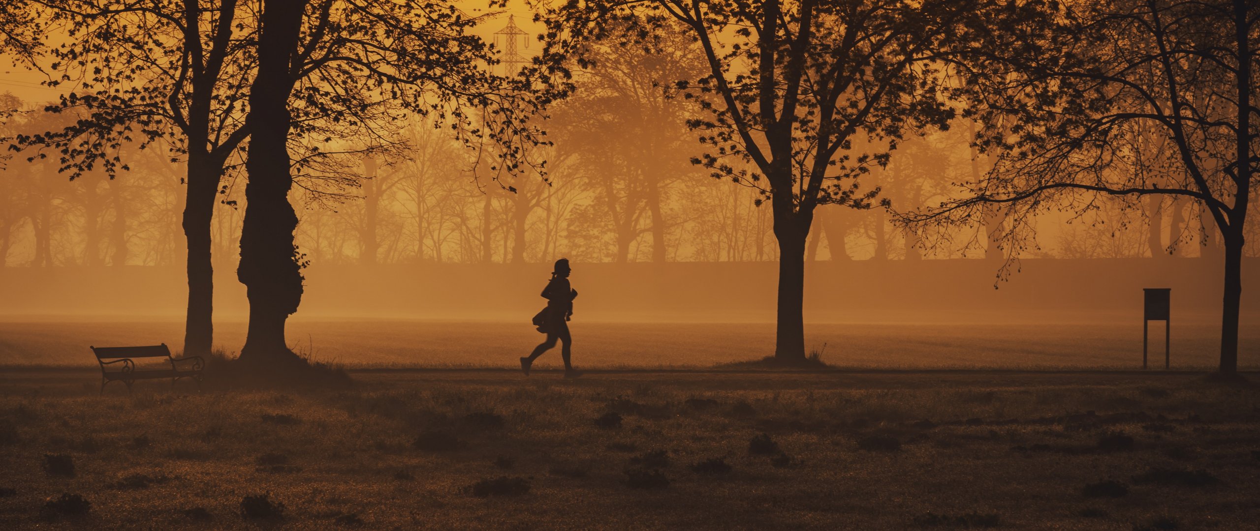 Обои: в желтом тумане, бегущий человек - 2560x1080