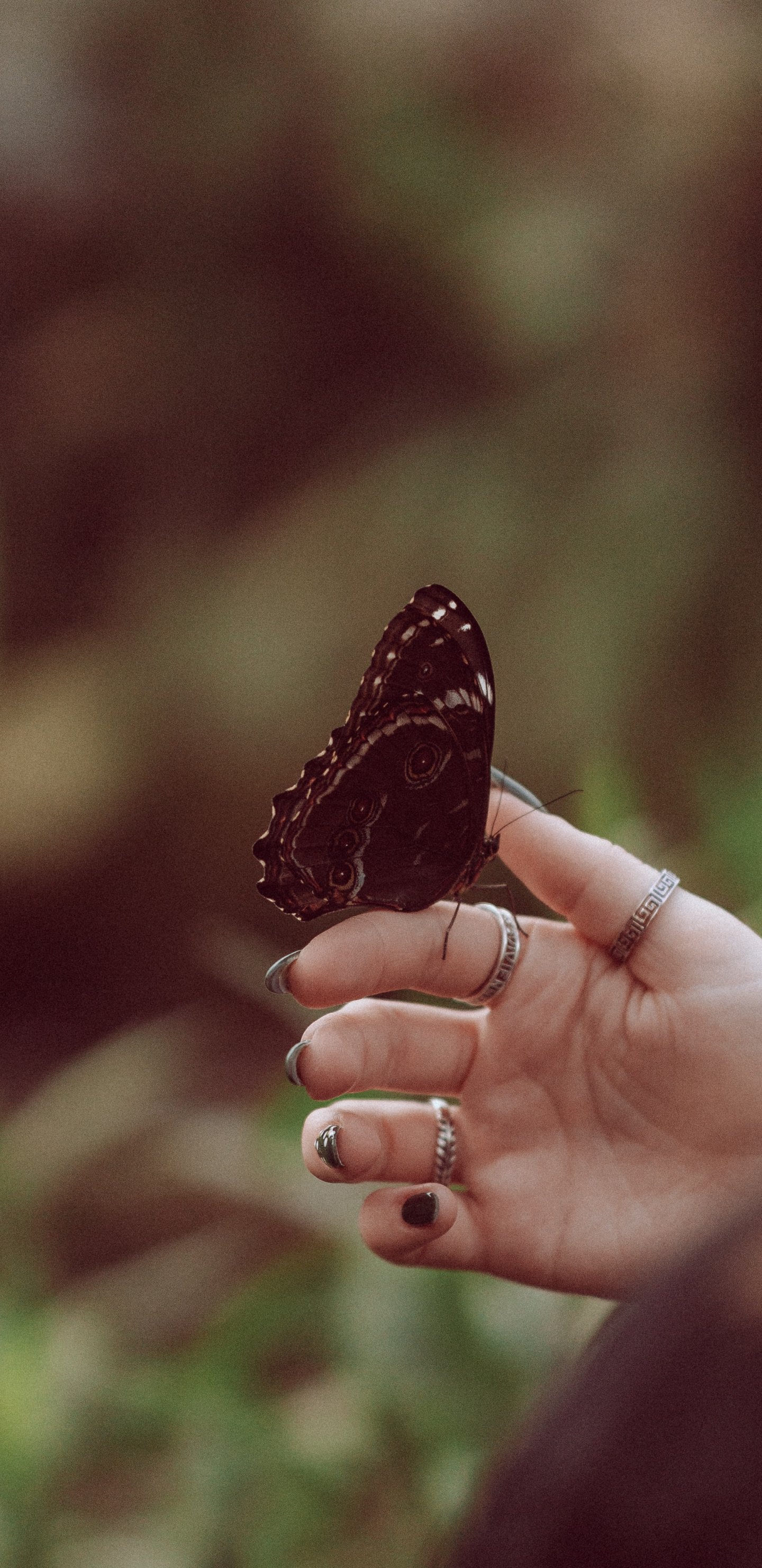Обои: бабочка, на руке - 1440x2960