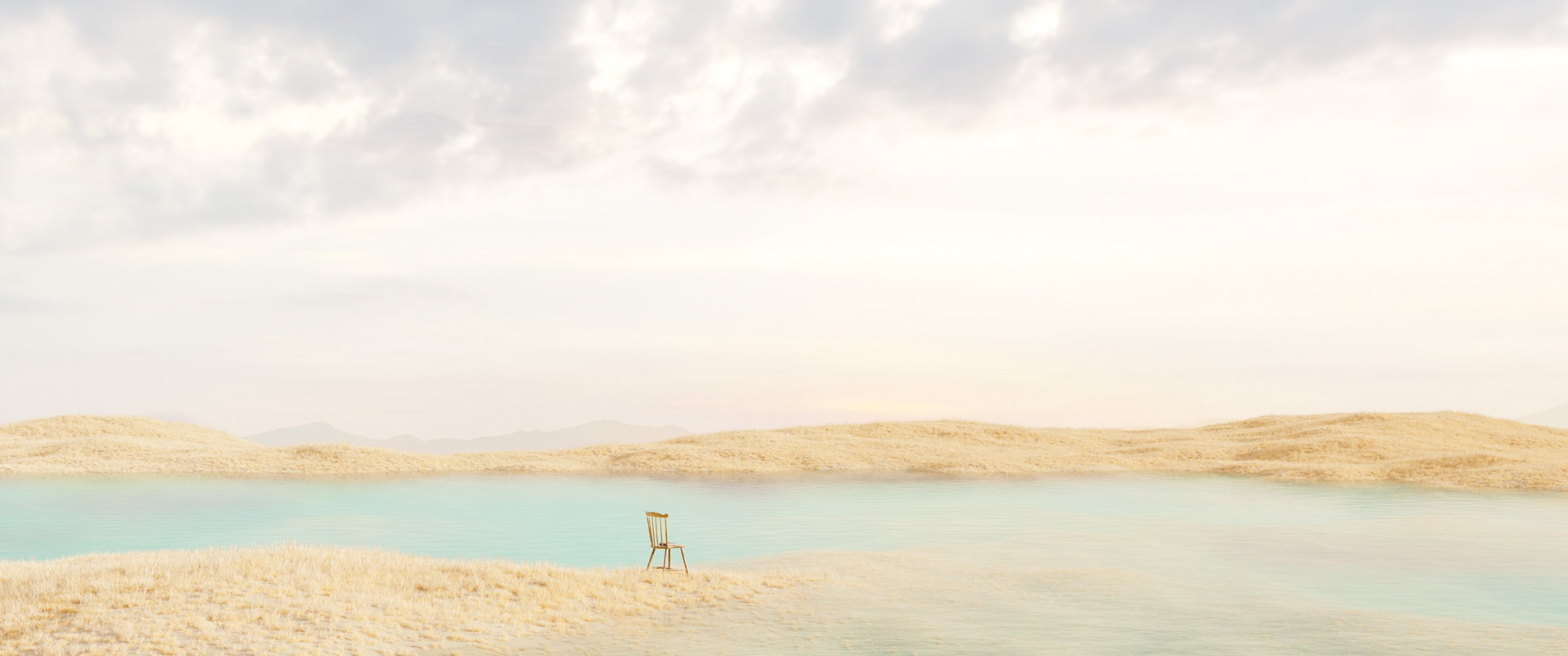 Обои: картина, озеро - 3440x1440