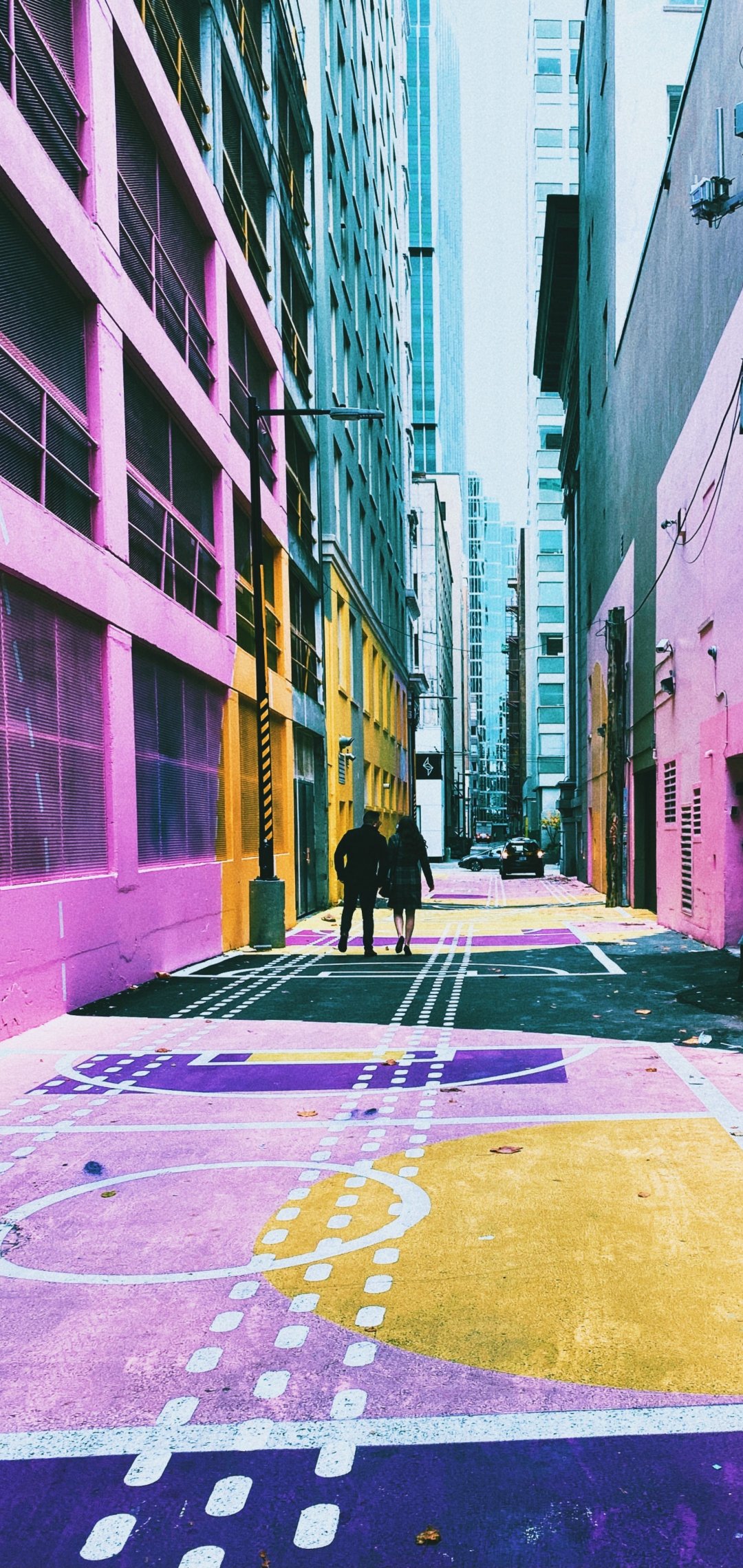 Обои: городская улица, разноцветные стены - 1080x2280