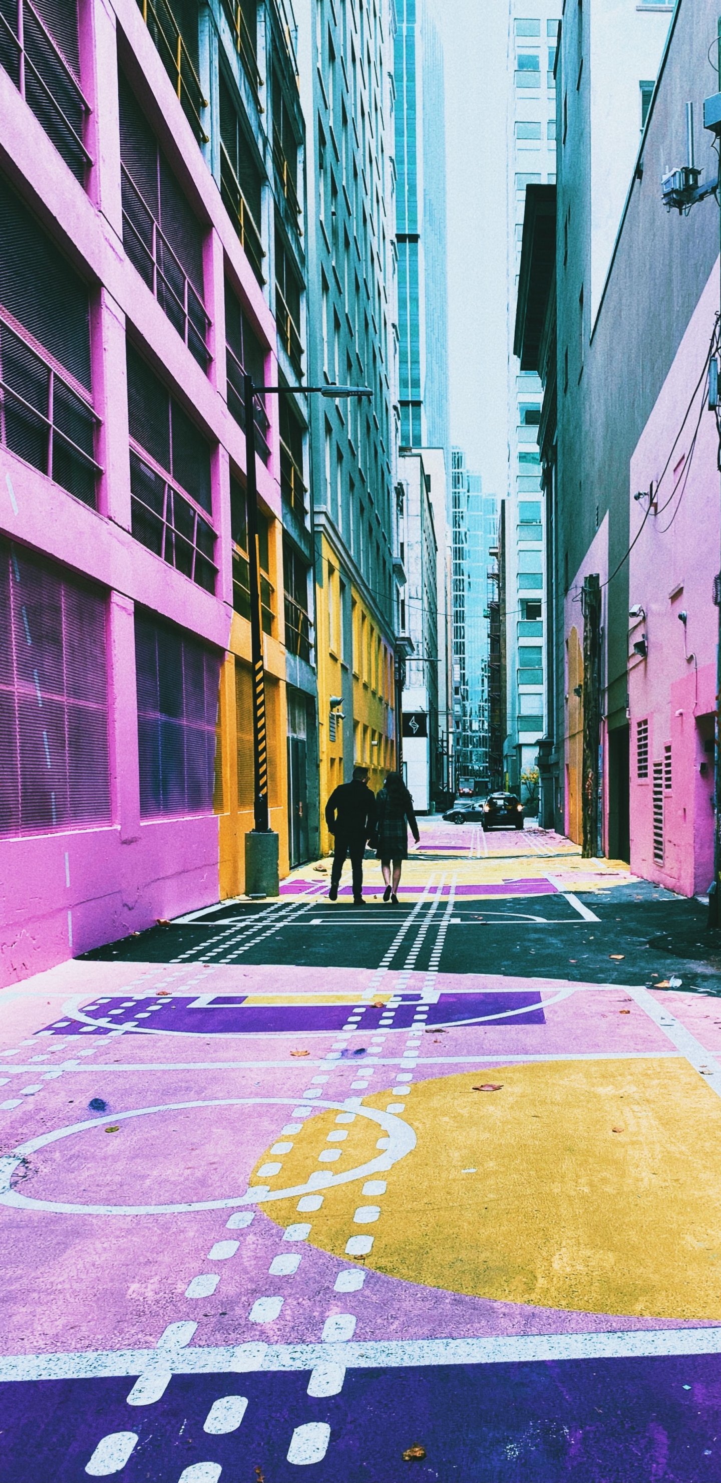 Обои: городская улица, разноцветные стены - 1440x2960