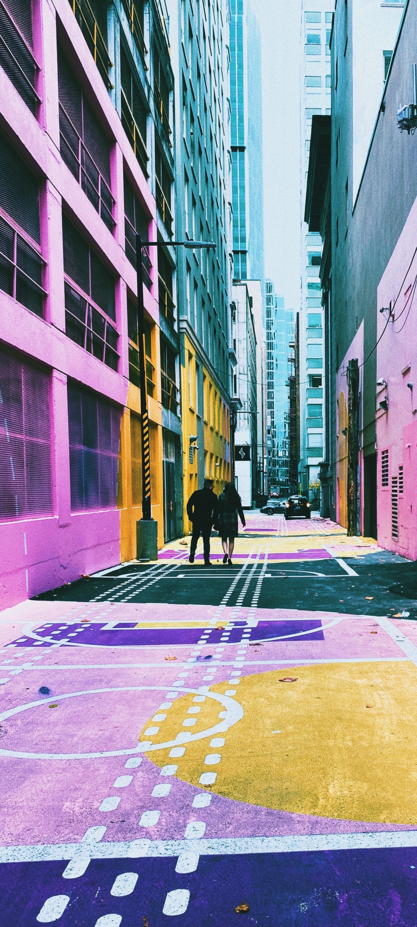 Обои: городская улица, разноцветные стены - 1440x3200