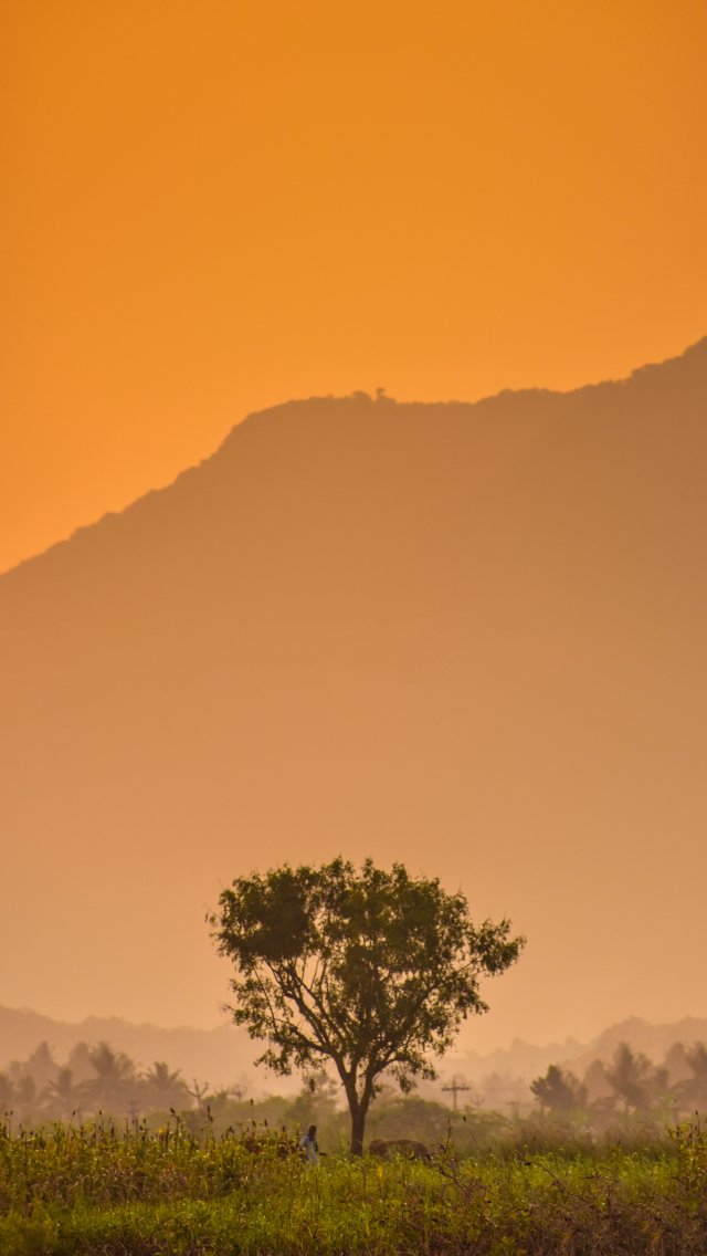 Обои: оранжевое небо, гора - 640x1136
