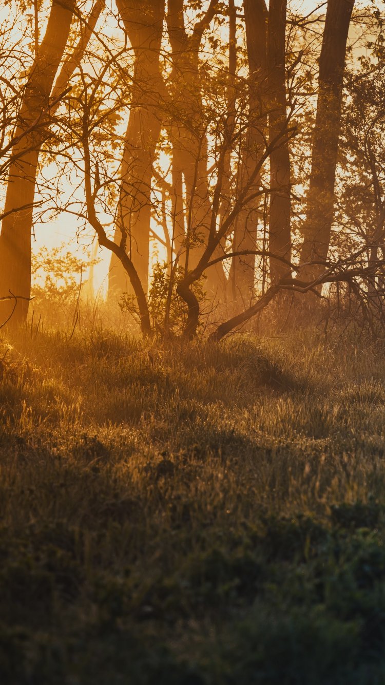 Обои: рассвет, в лесу - 750x1334