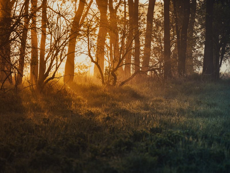 Обои: рассвет, в лесу - 800x600