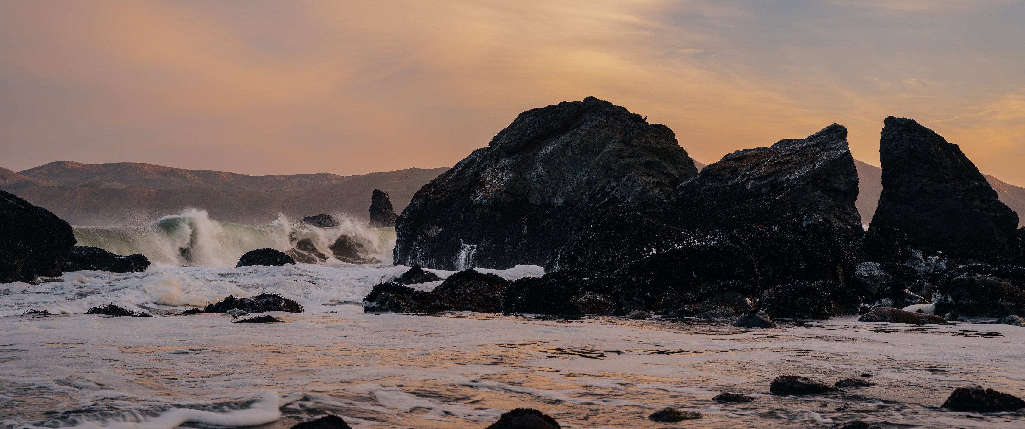 морские волны, морская пена, берег
